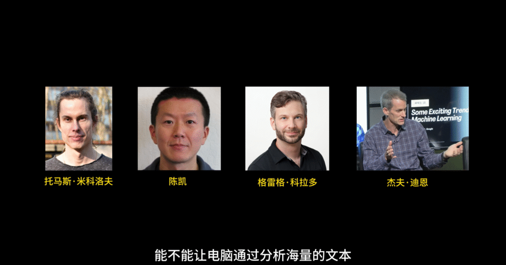 于是,几位研究员——托马斯·米科洛夫(Tomas Mikolov)、陈凯(Kai Chen)、格雷格·科拉多(Greg Corrado)、杰夫·迪恩(Jeff Dean)——想到:能不能让电脑通过分析海量文本,自动学会词的含义和关系?他们在论文《Efficient Estimation of Word Representations in Vector Space》中提出了一项划时代的技术 Word2Vec,并开源了代码。