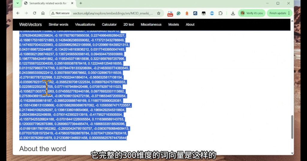 例如,cat 的 300 维词向量 显示,离“cat”最近的词是“dog”、“kitten”、“rabbit”。是不是感到词向量真是一个天才的设计呢?