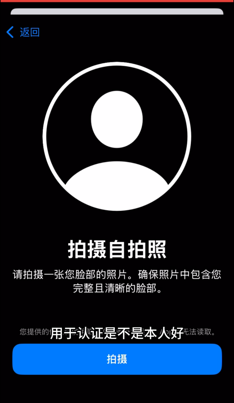 按提示拍一张清晰的正面照,用于验证是否本人操作。